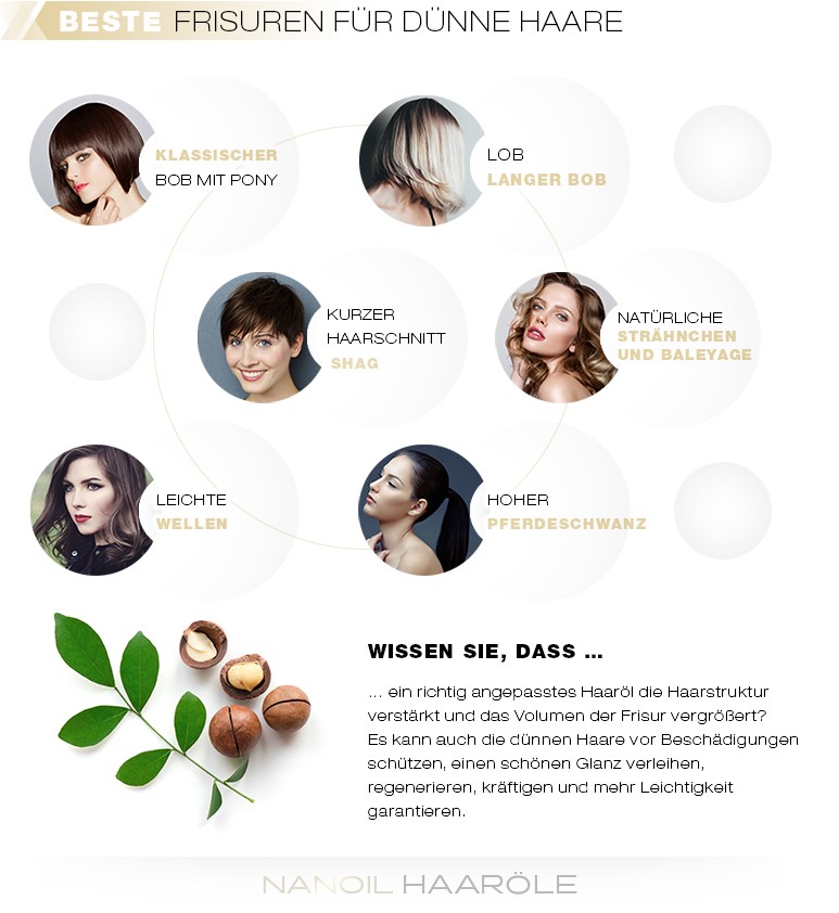 Besitzerinnen der dünnen Haare können sich zwar nicht jede Frisur gönnen, das ist wahr, die Auswahl der Frisuren ist aber immer noch sehr groß.